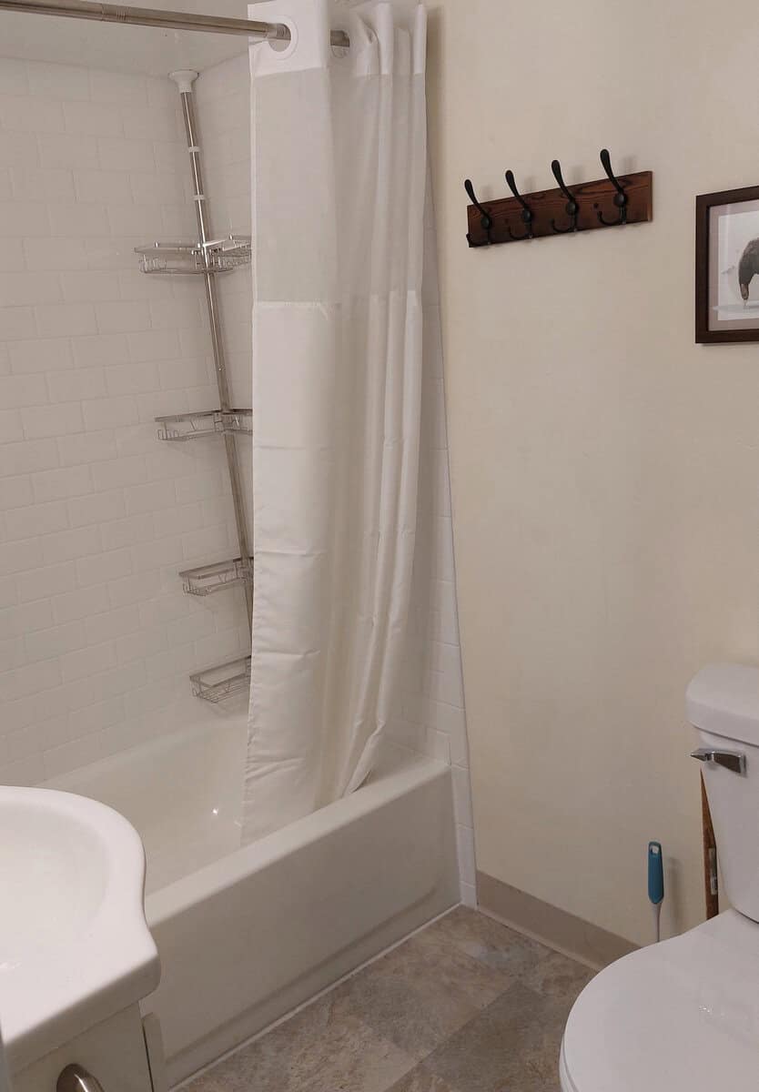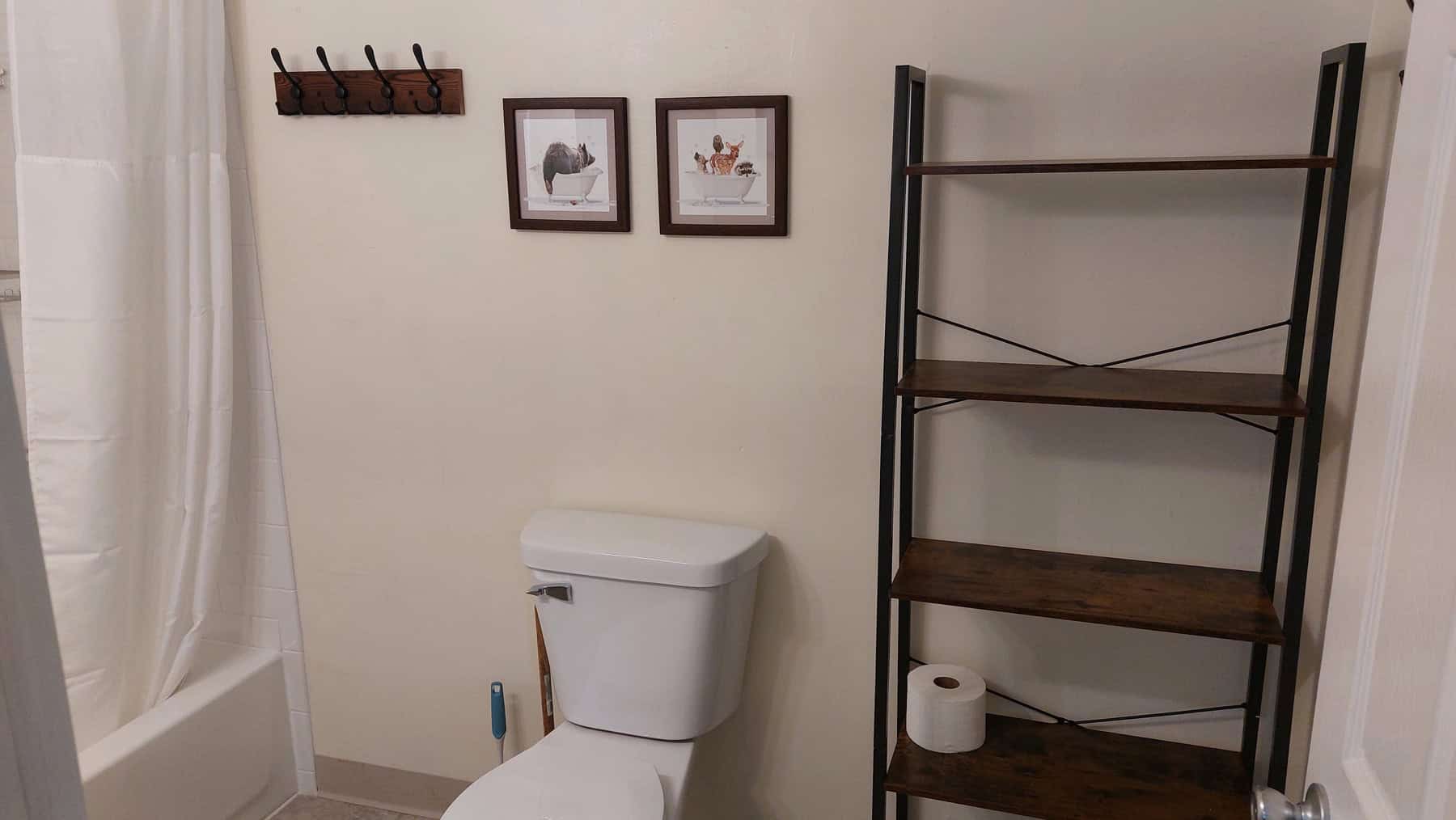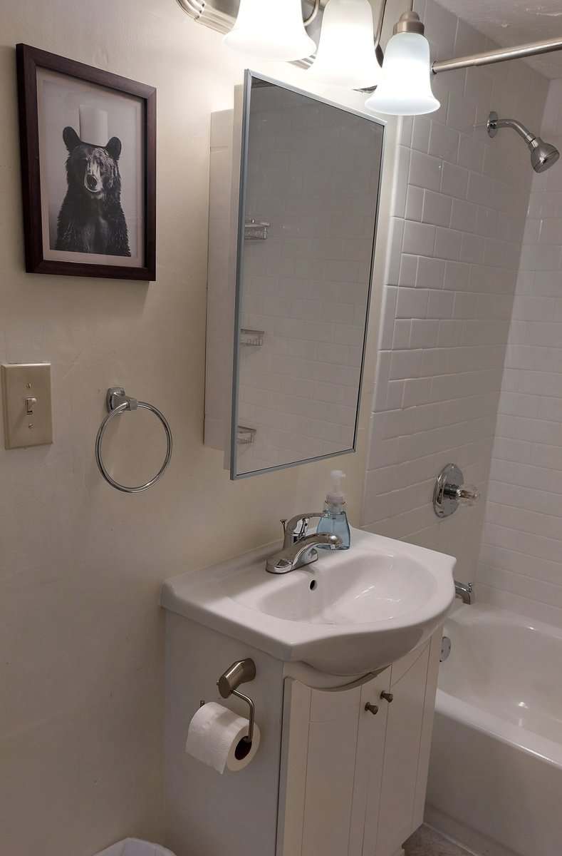 Inside the Winding River Retreat, you’ll find a fully furnished, freshly remodeled two-bedroom home designed with comfort in mind. The kitchen is stocked with the basic cookware and utensils, ready for easy meals, and the open living area has comfy seating for relaxing after a day outdoors. You’ll also find a full bathroom with a tub/shower combo guest use.